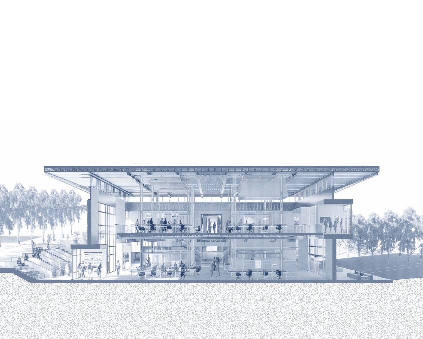 The Cloud Ecosystem is a phenomenological exploration of the relationship between nature and technology, unfolding across multiple scales—from site to interior. The design choreographs moments of immersion, reflection, and dynamic experience, creating an environment where digital and natural systems intertwine and redefine how users engage with both.