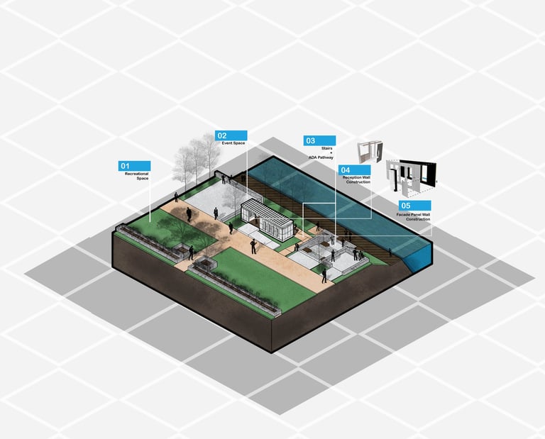 Creation Space introduces a new building typology in Roxbury, Massachusetts, where art and community merge around a central “Creation Chamber.” Serving as a hub for collaboration, making, and expression, the space brings people together through shared creative practice while blurring the boundaries between gallery, studio, and gathering place.